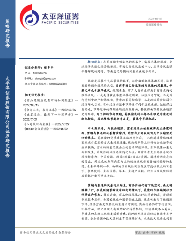 【太平洋证券】【20220807】投资策略报告:风暴眼的平静-16页