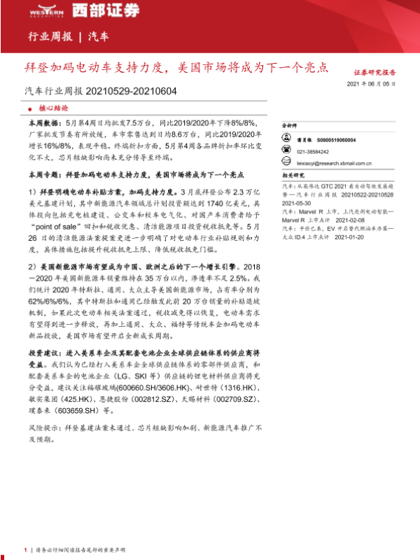 【西部证券】【20210605】拜登加码电动车支持力度,美国市场将成为下一个亮点-18页