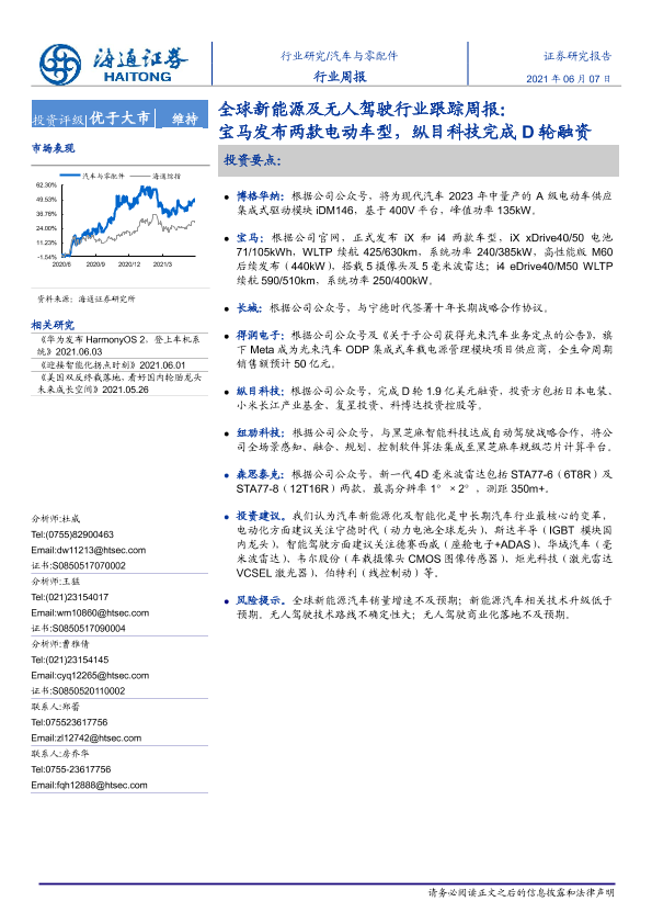 【海通证券】【20210607】全球新能源及无人驾驶行业跟踪周报:宝马发布两款电动车型,纵目科技完成D轮融资-2页