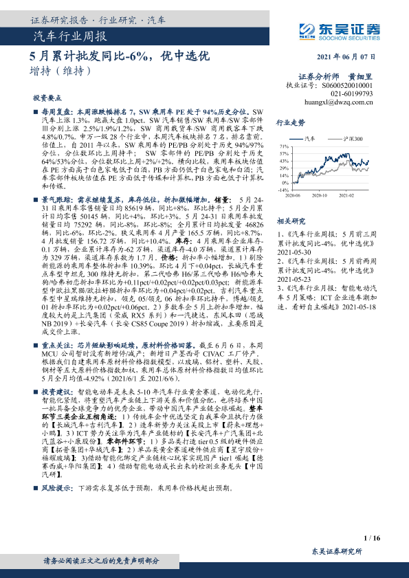 【东吴证券】【20210607】20210607-东吴证券-汽车行业周报:5月累计批发同比-6%,优中选优-16页