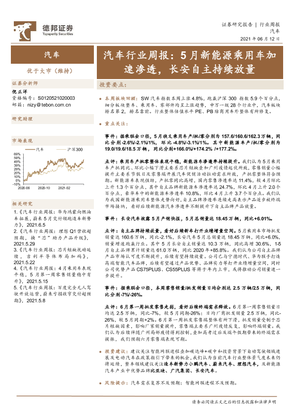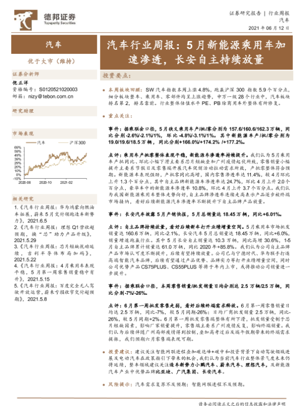 【德邦证券】【20210612】汽车行业周报:5月新能源乘用车加速渗透,长安自主持续放量-14页