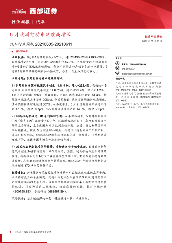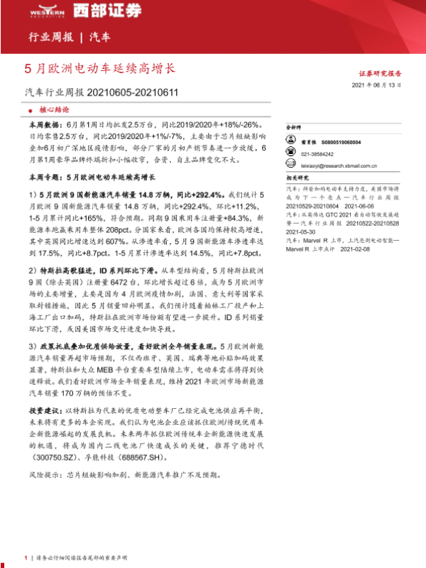 【西部证券】【20210613】5月欧洲电动车延续高增长-15页