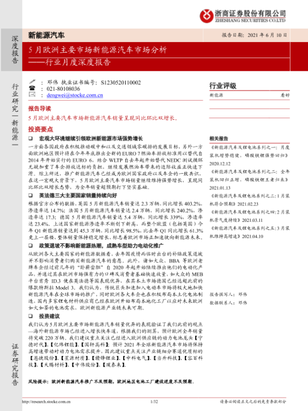 【浙商证券】【20210610】5月欧洲主要市场新能源汽车市场分析-32页