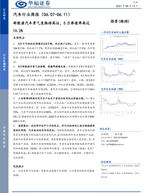 【华福证券】【20210613】汽车行业周报:新能源汽车景气度维持高位,5月渗透率高达10.2%-8页