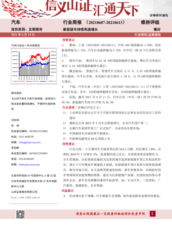 【山西证券】【20210614】20210614-山西证券-汽车行业周报:新能源车持续高速增长-14页