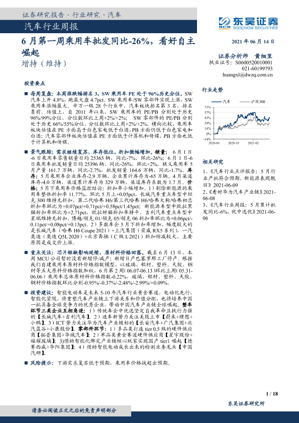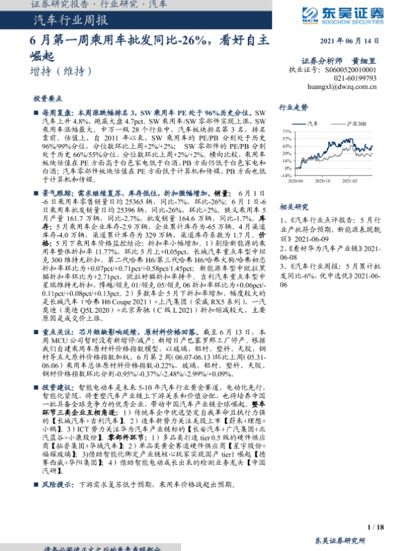 【东吴证券】【20210614】20210614-东吴证券-汽车行业周报:6月第一周乘用车批发同比-26%,看好自主崛起-18页