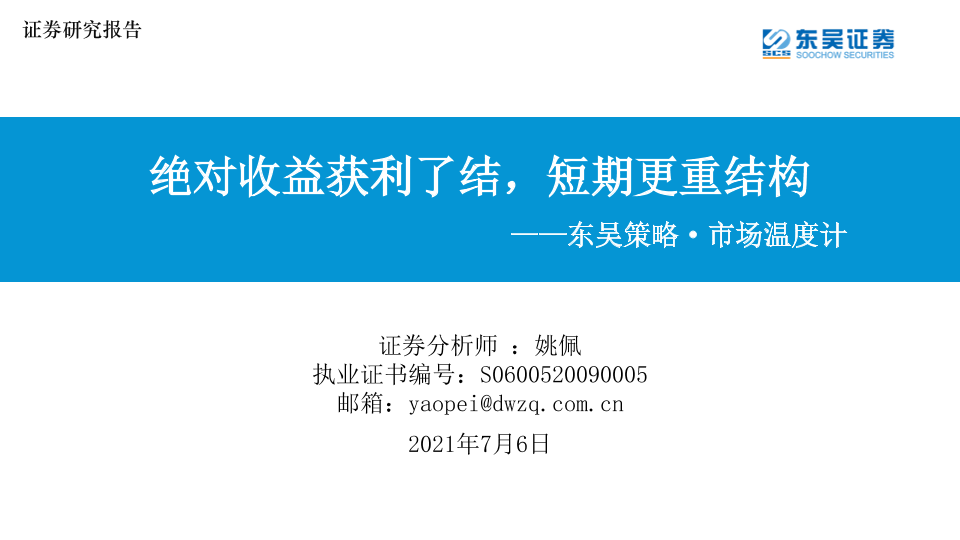 【东吴证券】【20210706】东吴策略·市场温度计:绝对收益获利了结,短期更重结构-26页