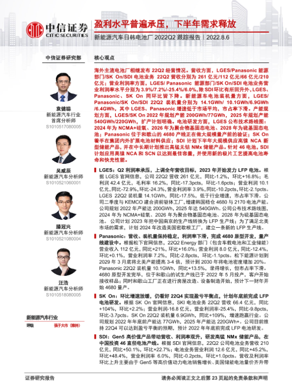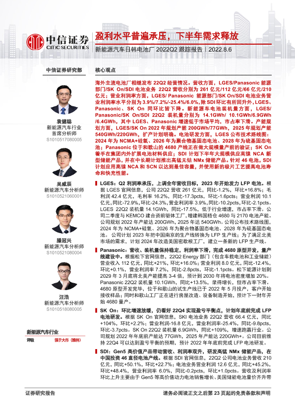 【中信证券】【20220806】新能源汽车行业日韩电池厂2022Q2跟踪报告:盈利水平普遍承压,下半年需求释放-24页