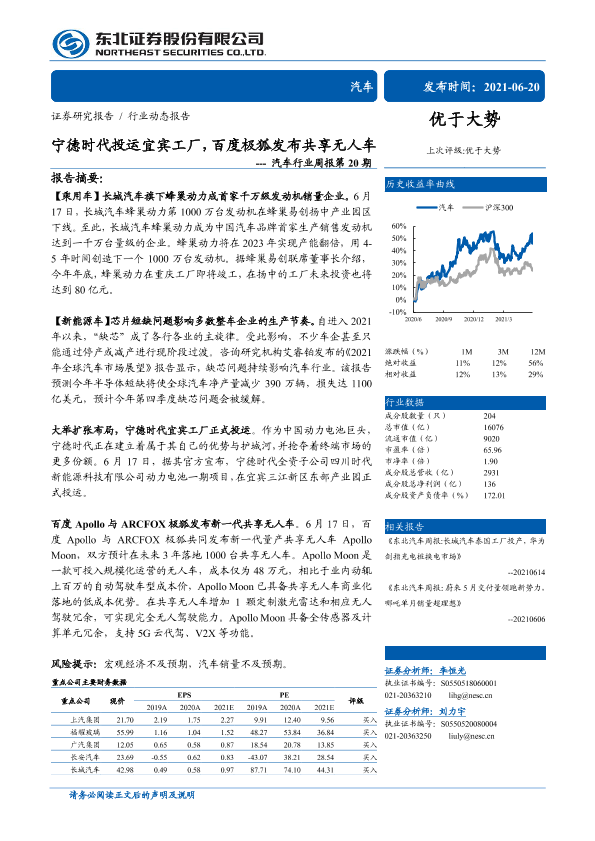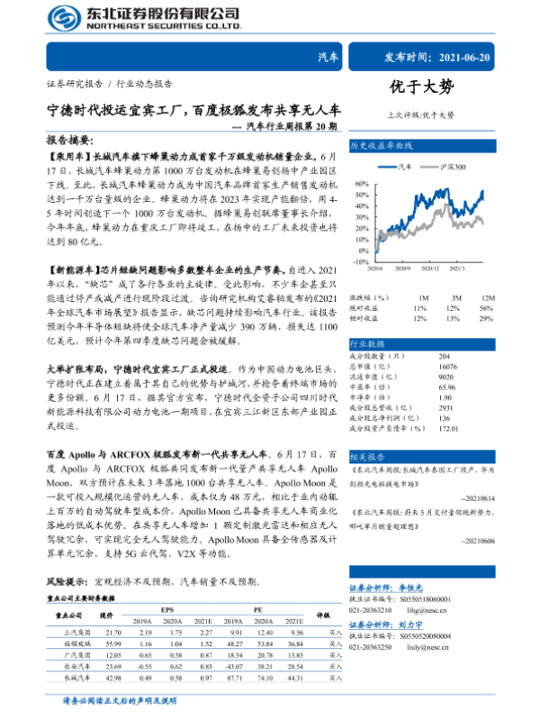 【东北证券】【20210620】宁德时代投运宜宾工厂,百度极狐发布共享无人车---汽车行业周报第20期-15页