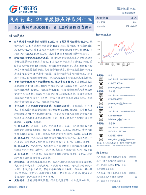 【广发证券】【20210620】21年数据点评系列十三:5月乘用车终端销量:自主品牌份额仍在提升-20页
