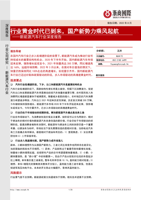 【浙商国际】【20220810】新能源汽车行业深度报告:行业黄金时代已到来,国产新势力乘风起航-25页