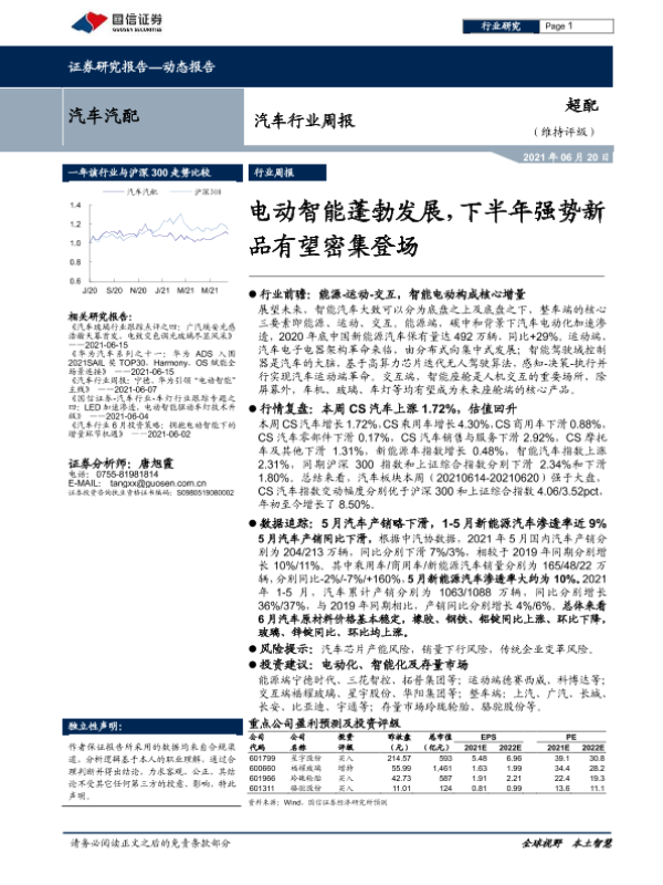 【国信证券】【20210620】汽车行业周报:电动智能蓬勃发展,下半年强势新品有望密集登场-20页