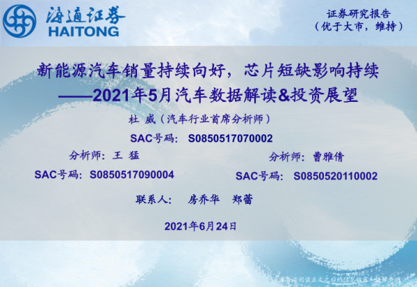 【海通证券】【20210624】2021年5月汽车数据解读&投资展望:新能源汽车销量持续向好,芯片短缺影响持续-23页