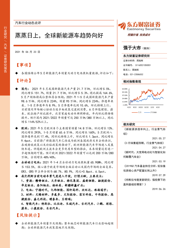 【东方财富证券】【20210623】汽车行业动态点评:蒸蒸日上,全球新能源车趋势向好-13页