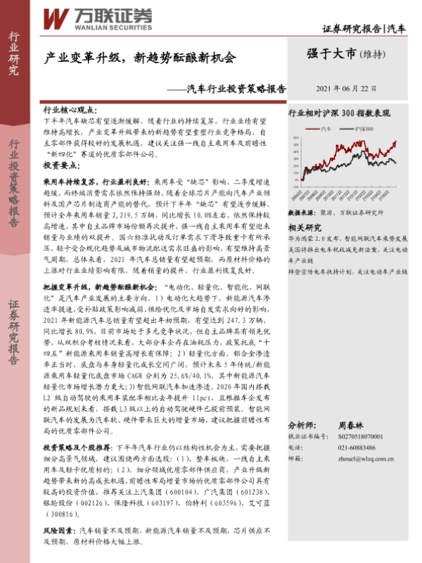 【万联证券】【20210622】20210622-万联证券-汽车行业投资策略报告:产业变革升级,新趋势酝酿新机会-26页