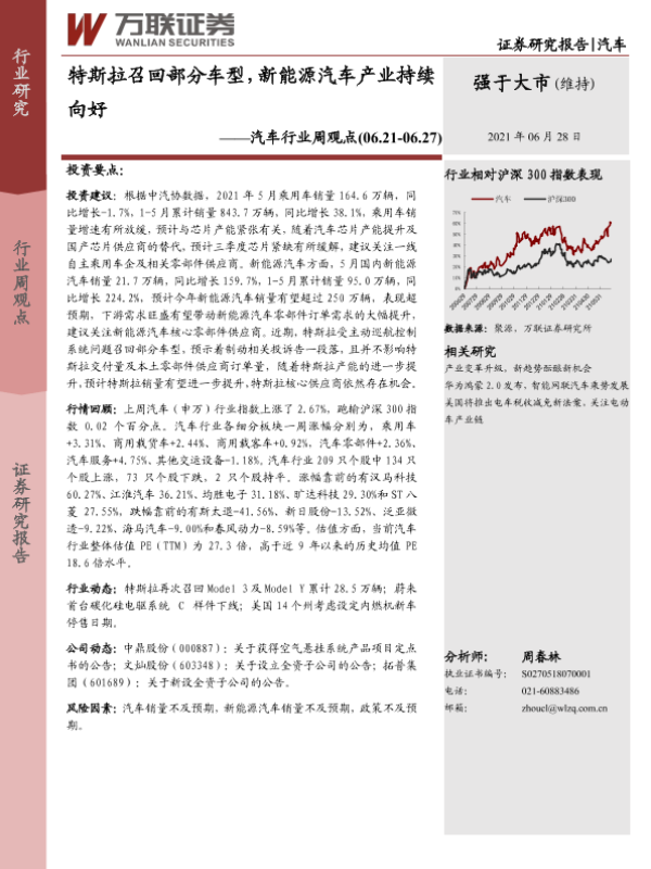 【万联证券】【20210628】特斯拉召回部分车型,新能源汽车产业持续向好-11页