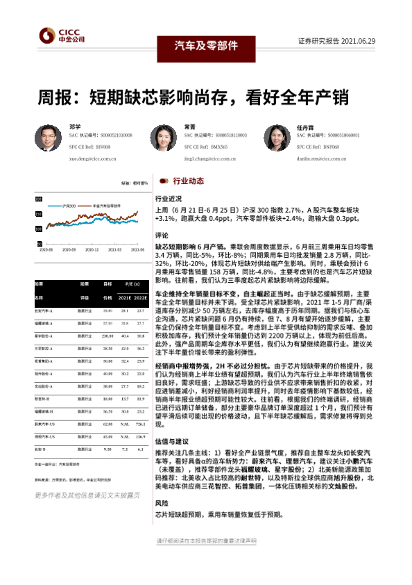 【中金公司】【20210629】汽车及零部件周报:短期缺芯影响尚存,看好全年产销-16页