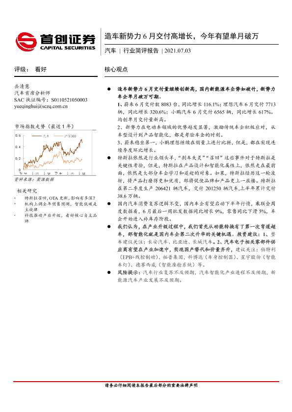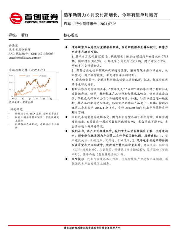【首创证券】【20210703】造车新势力6月交付高增长,今年有望单月破万-10页
