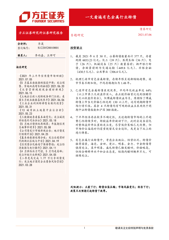 【方正证券】【20210706】专题研究:一文看遍有色金属行业转债-17页