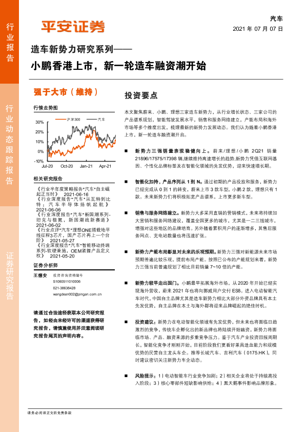 【平安证券】【20210707】造车新势力研究系列:小鹏香港上市,新一轮造车融资潮开始-14页
