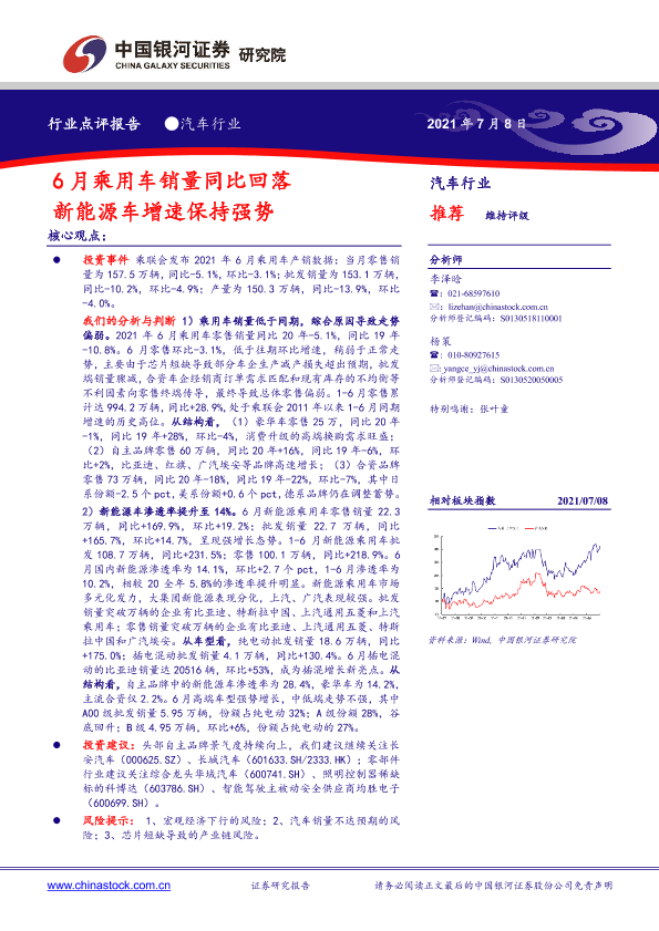 【银河证券】【20210708】6月乘用车销量同比回落 新能源车增速保持强势-2页
