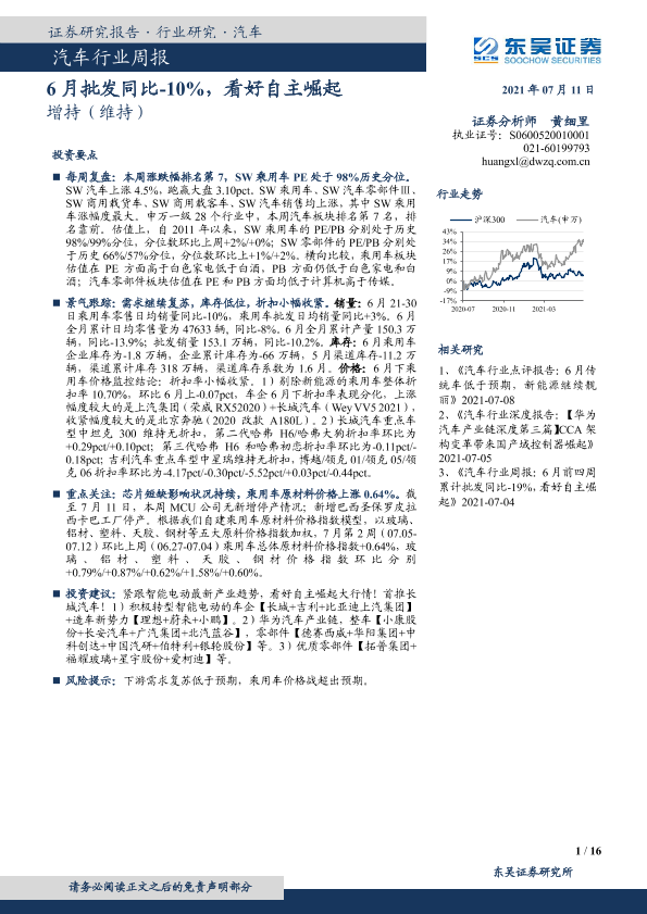 【东吴证券】【20210711】20210711-东吴证券-汽车行业周报:6月批发同比-10%,看好自主崛起-16页