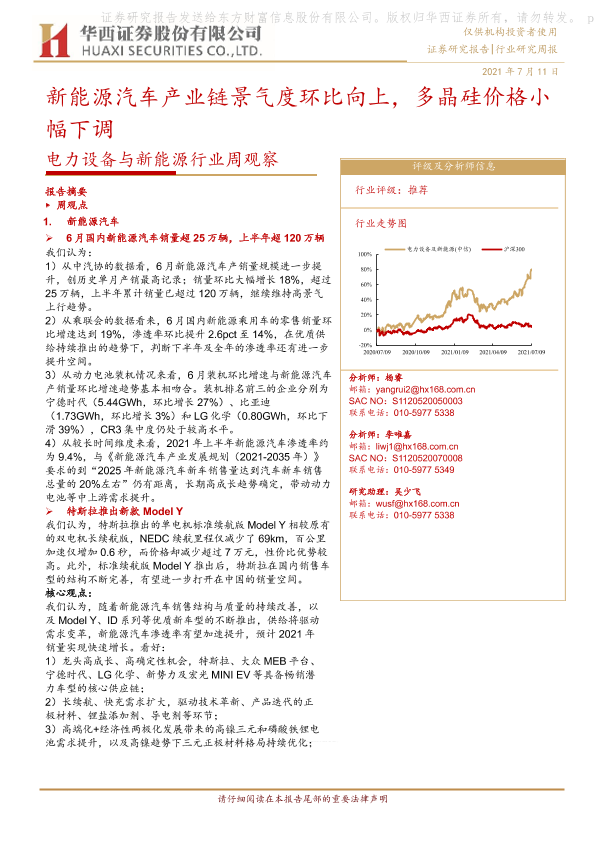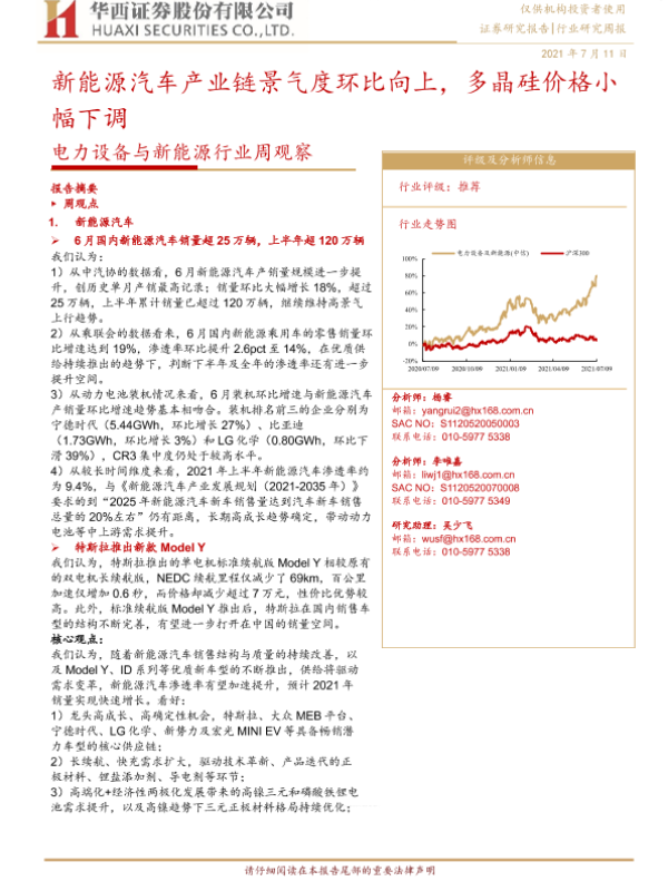 【华西证券】【20210711】电力设备与新能源行业周观察:新能源汽车产业链景气度环比向上,多晶硅价格小幅下调-17页