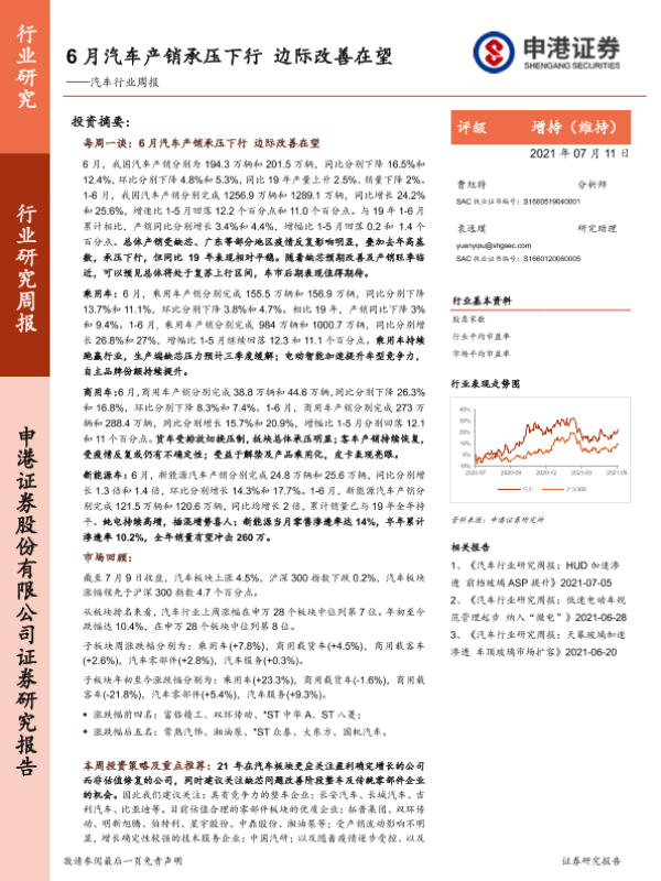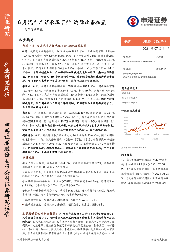 【申港证券】【20210711】6月汽车产销承压下行 边际改善在望-16页