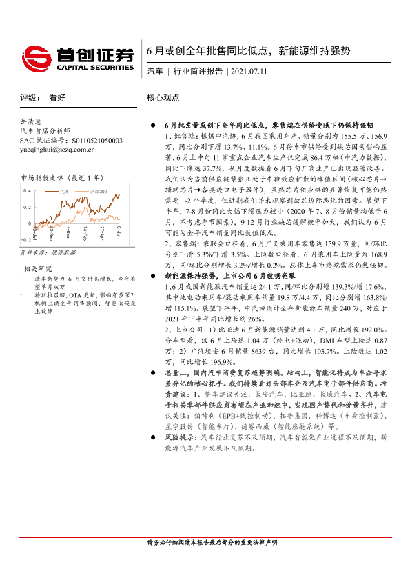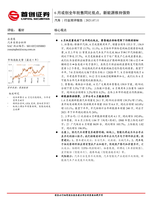 【首创证券】【20210711】6月或创全年批售同比低点,新能源维持强势-10页