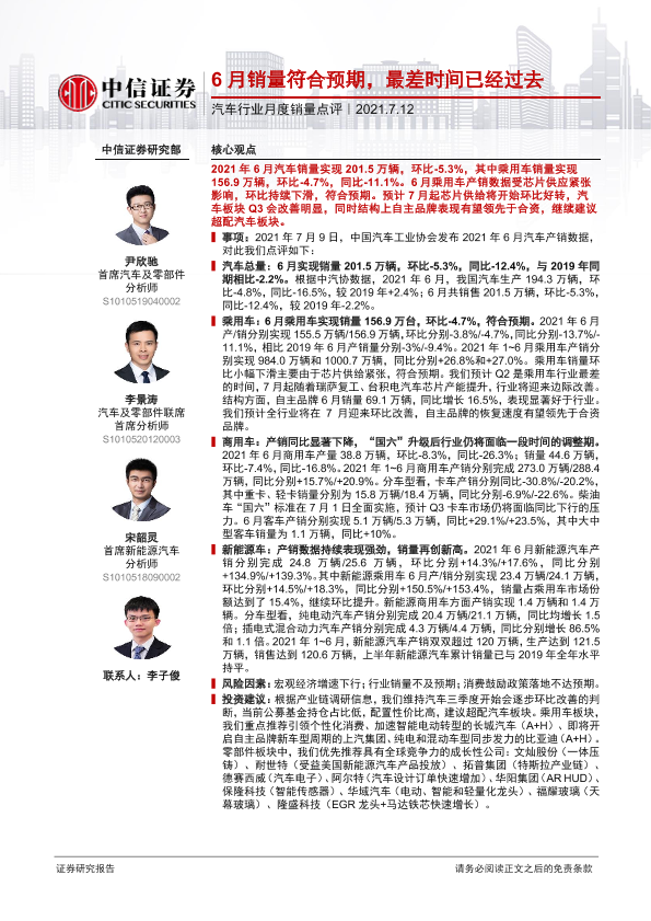 【中信证券】【20210712】20210712-中信证券-汽车行业月度销量点:6月销量符合预期,最差时间已经过去-2页