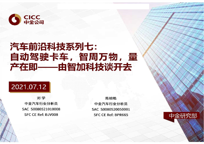【中金公司】【20210712】20210712-中金公司-汽车行业前沿科技系列七:自动驾驶卡车,智周万物,量产在即——由智加科技谈开去-40页
