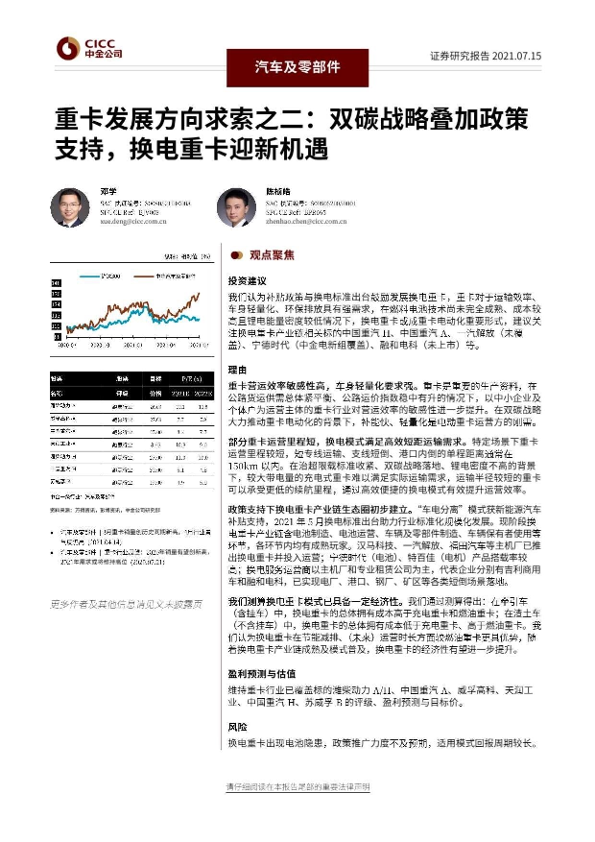 【中金公司】【20210715】重卡发展方向求索之二:双碳战略叠加政策支持,换电重卡迎新机遇-32页