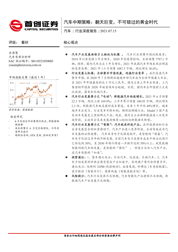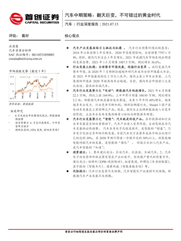 【首创证券】【20210715】汽车中期策略:翻天巨变,不可错过的黄金时代-24页