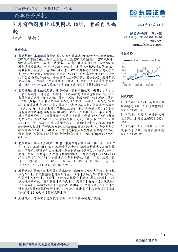 【东吴证券】【20210718】汽车行业周报:7月前两周累计批发同比-18%,看好自主崛起-16页