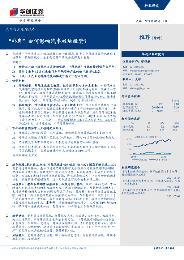 【华创证券】【20210716】汽车行业跟踪报告:“补库”如何影响汽车板块投资?-16页