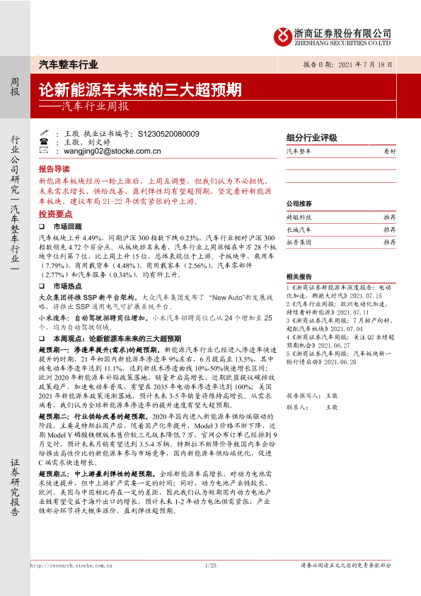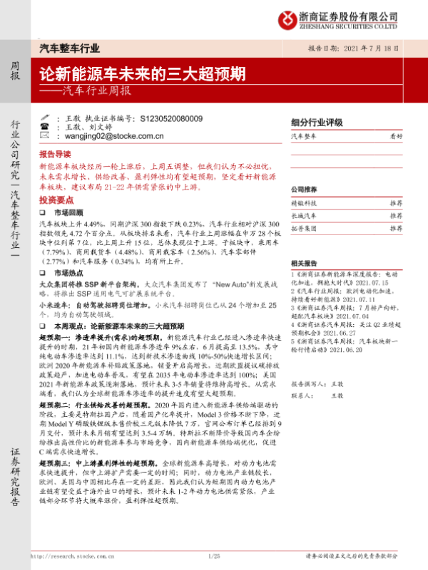 【浙商证券】【20210718】20210718-浙商证券-汽车行业周报:论新能源车未来的三大超预期-25页