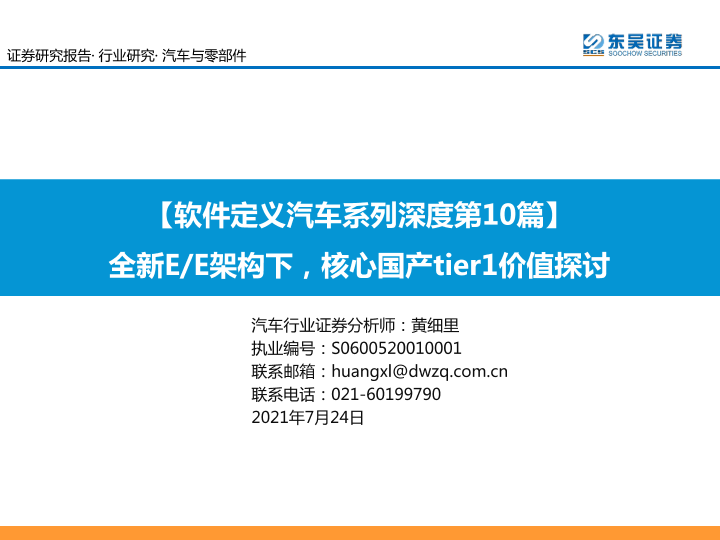 【东吴证券】【20210724】软件定义汽车系列深度第10篇:全新E/E架构下,核心国产tier1价值探讨-98页