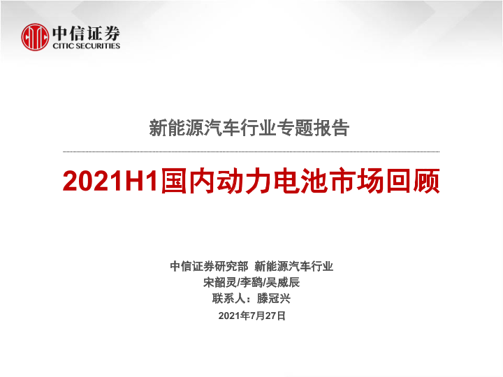 2021年上半年 中信证券 动力电池 市场回顾 新能源汽车