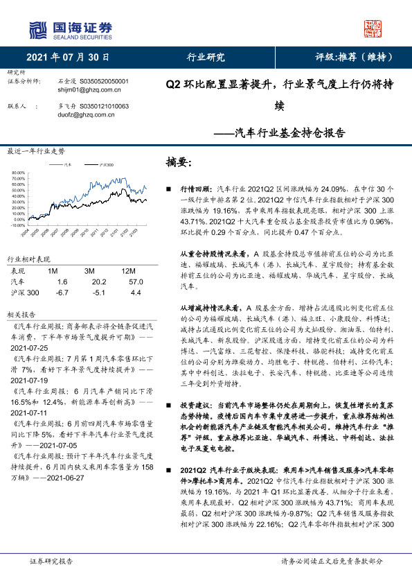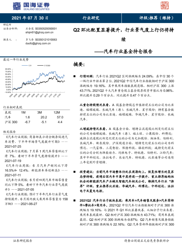 【国海证券】【20210730】20210730-国海证券-汽车行业基金持仓报告:Q2环比配置显著提升,行业景气度上行仍将持续-11页
