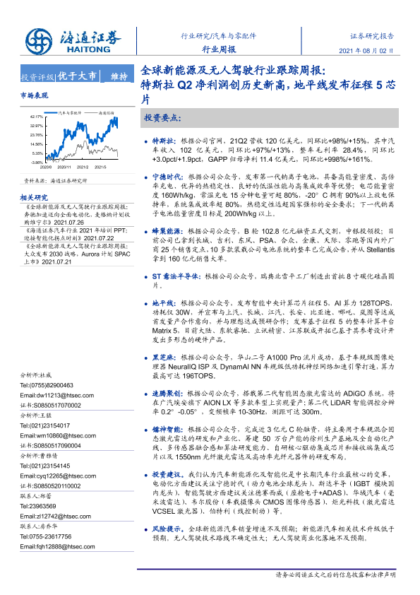【海通证券】【20210802】全球新能源及无人驾驶行业跟踪周报:特斯拉Q2净利润创历史新高,地平线发布征程5芯片-2页