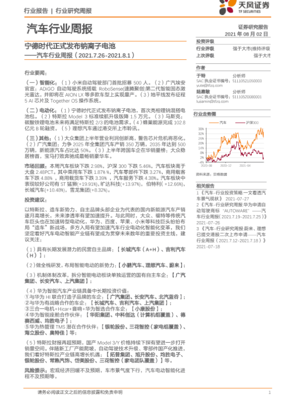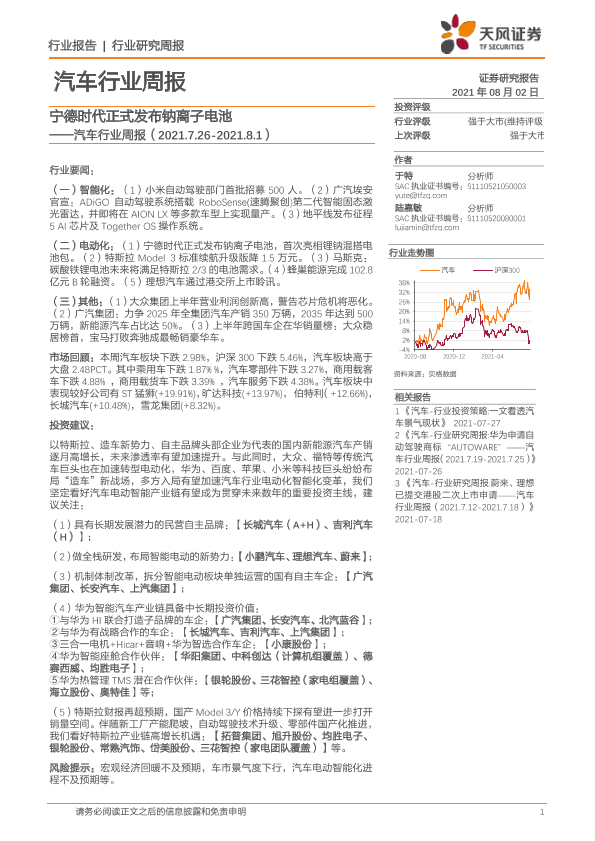 【天风证券】【20210802】20210802-天风证券-汽车行业周报:宁德时代正式发布钠离子电池-18页