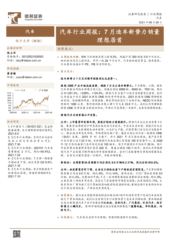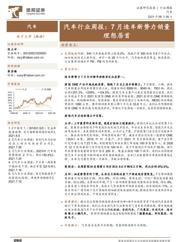 【德邦证券】【20210806】汽车行业周报:7月造车新势力销量理想居首-13页