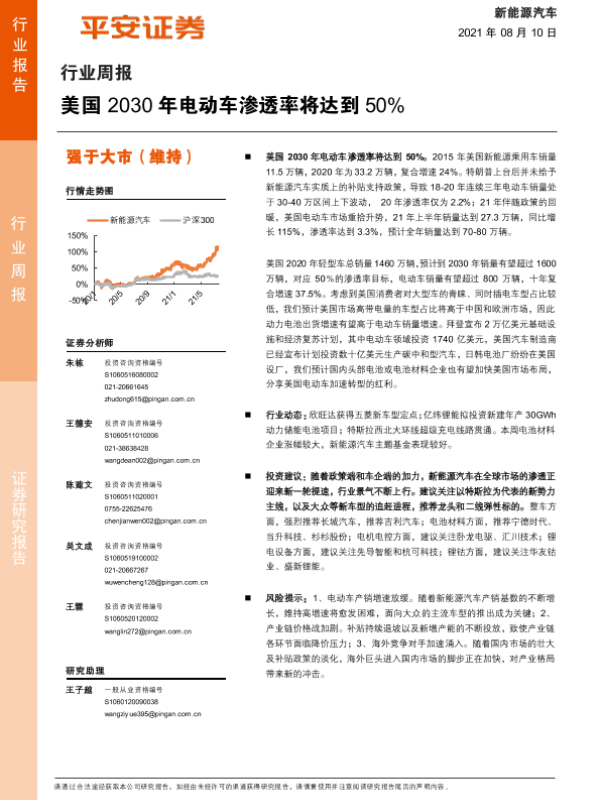 【平安证券】【20210810】20210810-平安证券-新能源汽车行业周报:美国2030年电动车渗透率将达到50%-10页