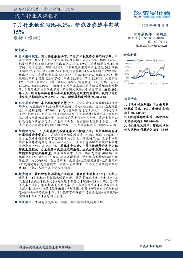 【东吴证券】【20210811】20210811-东吴证券-汽车行业点评报告:7月行业批发同比-8.2%,新能源渗透率突破15%-6页