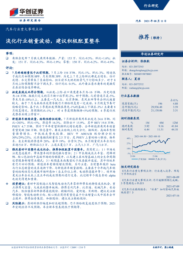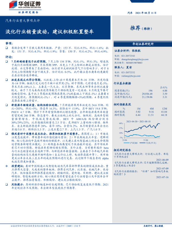 【华创证券】【20210811】汽车行业重大事项点评:淡化行业销量波动,建议积极配置整车-13页