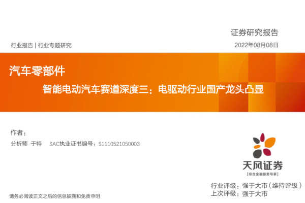 【天风证券】【20220808】汽车零部件行业智能电动汽车赛道深度三:电驱动行业国产龙头凸显-39页