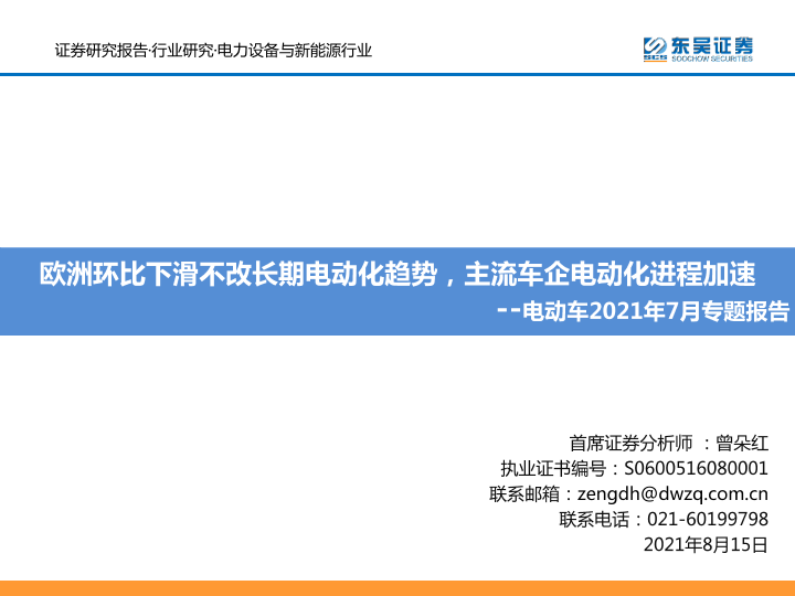 【东吴证券】【20210815】电动车2021年7月专题报告:欧洲环比下滑不改长期电动化趋势,主流车企电动化进程加速-66页