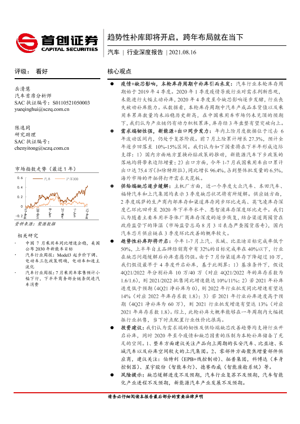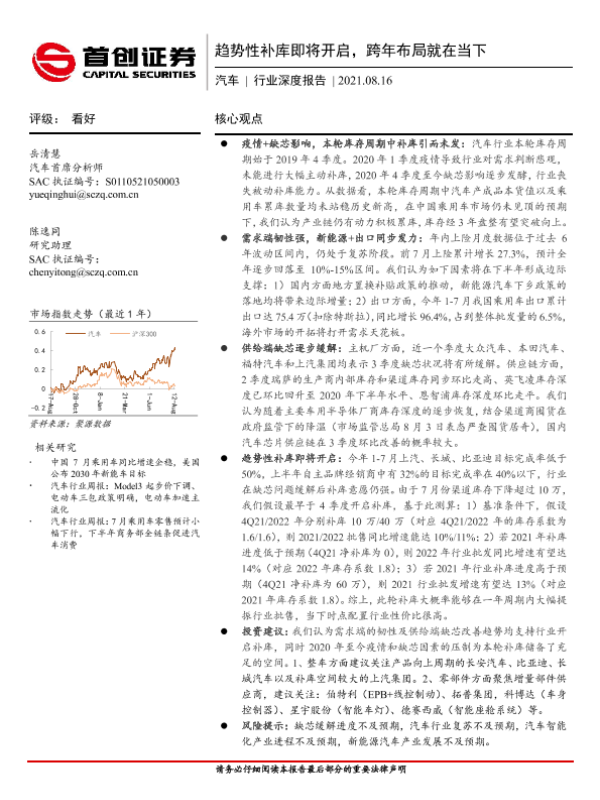 【首创证券】【20210816】20210816-首创证券-汽车行业深度报告:趋势性补库即将开启,跨年布局就在当下-22页