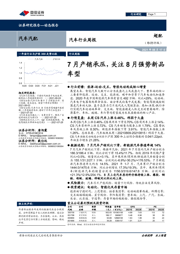 【国信证券】【20210817】20210817-国信证券-汽车行业周报:7月产销承压,关注8月强势新品车型-22页