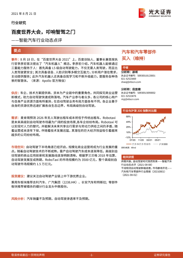 【光大证券】【20210821】智能汽车行业动态点评:百度世界大会,叩响智驾之门-9页